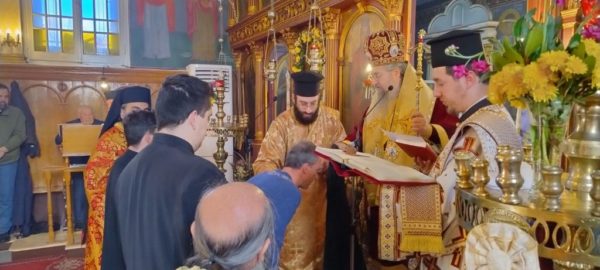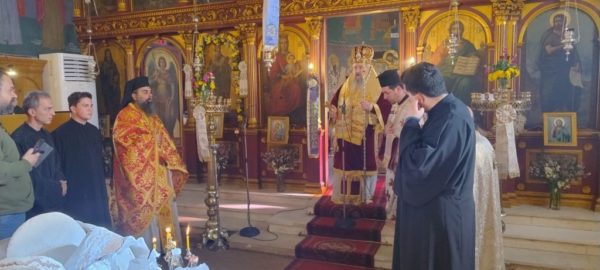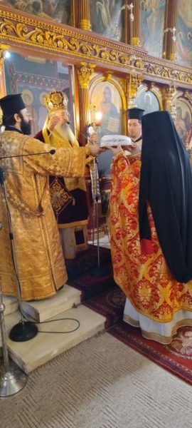 Πριν το πέρας της Αρχιερατικής Θείας Λειτουργίας ο Σεβασμιώτατος Μητροπολίτης ευλόγησε τους προσφερόμενους άρτους και στην συνέχεια χειροθέτησε αναγνώστη τον κ. Κωνσταντίνο Μαργέλη, ο οποίος επί σειρά ετών αποτελεί μέλος του Εκκλησιαστικού Συμβουλίου του Ιερού Ναού και παράλληλα διακονεί με ζήλο το Ιερό αναλόγιο της Ενορίας, ενώ κατά καιρούς πραγματοποιεί ομιλίες – συζητήσεις θεολογικού και πνευματικού περιεχομένου.