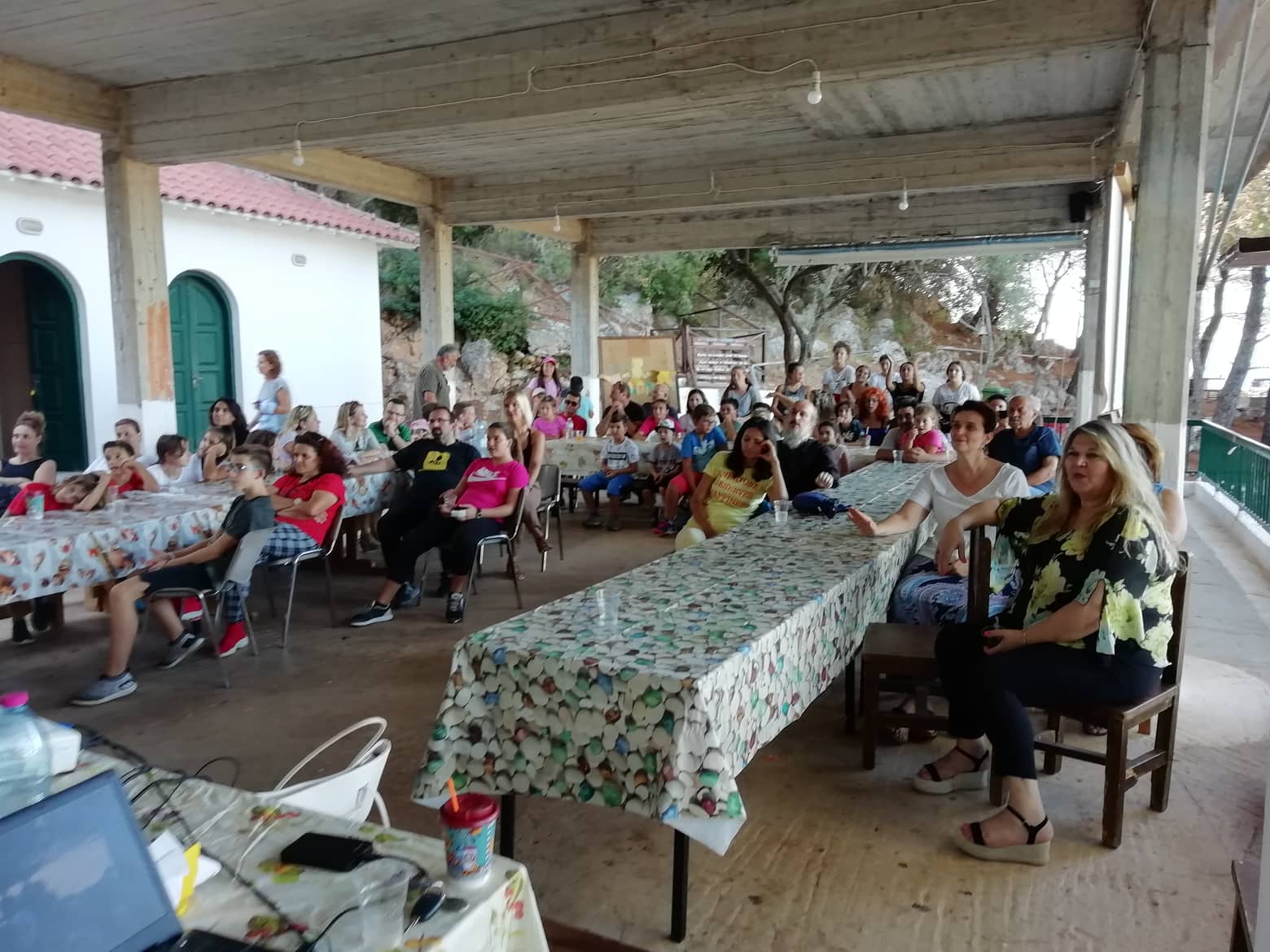 Ξεχωριστή στιγμή για μικρούς και μεγάλους ήταν η προβολή των φωτογραφιών από τις εννιά κατασκηνωτικές περιόδους του περασμένου καλοκαιριού.