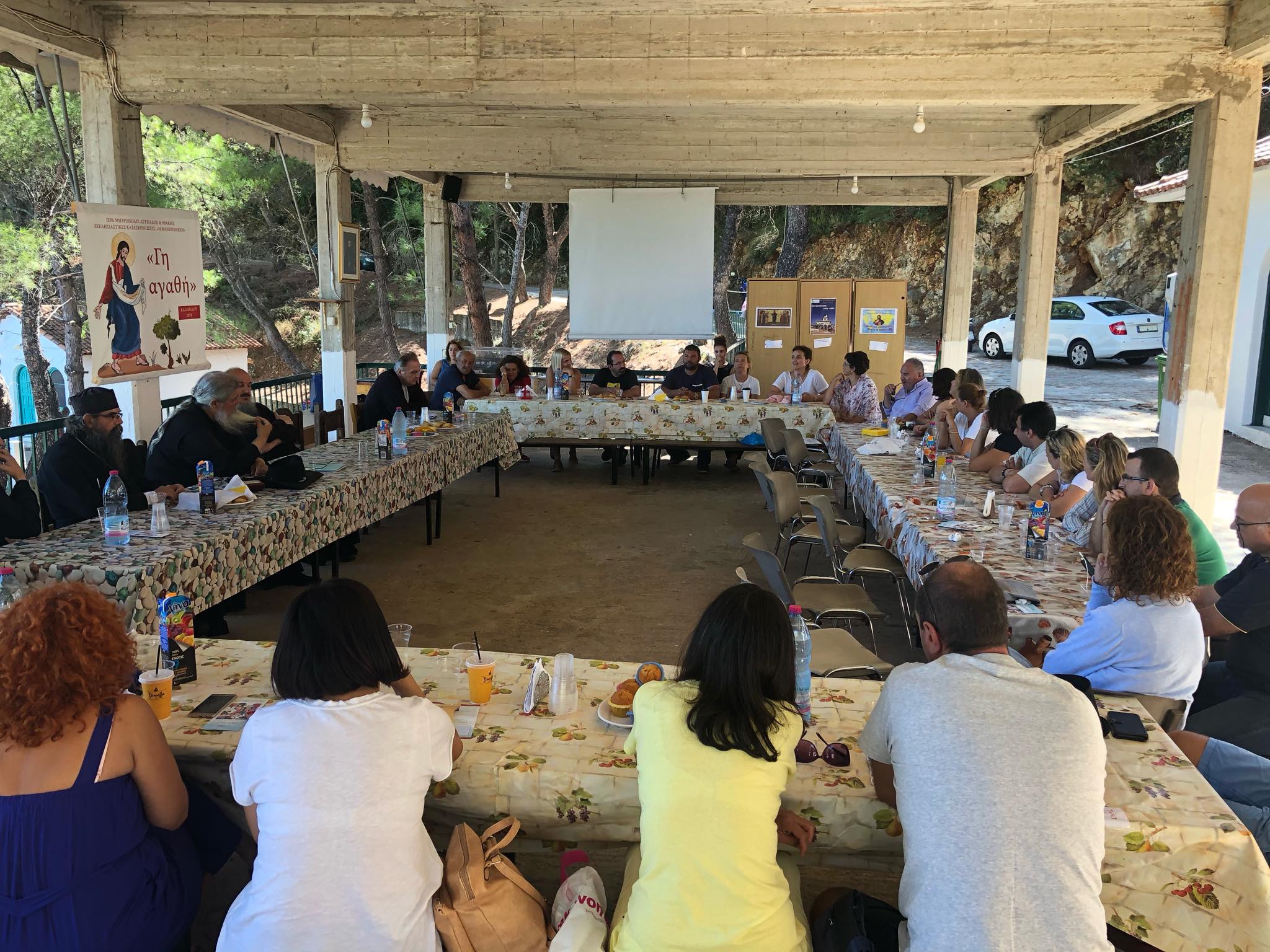 Το κοινό τραπέζι των γονιών και την μεσημεριανή συναναστροφή τους στο υπέροχο κατασκηνωτικό περιβάλλον ακολούθησε ένας απογευματινός κύκλος συζήτησης γύρω από τις σύγχρονες «ανάγκες» των νέων και των οικογενειών τους για την πολύπλευρη συμπαράσταση της Εκκλησίας μας.