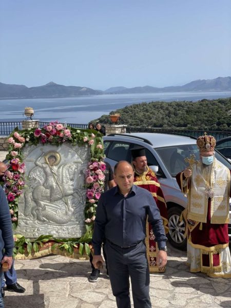 Μετά το πέρας της Θείας Λειτουργίας πραγματοποιήθηκε η καθιερωμένη λιτάνευση της ιεράς εικόνας του Αγίου Γεωργίου στα σοκάκια του χωριού, παρουσία του Δημάρχου Μεγανησίου κ. Παύλου Δάγλα και πλήθους ευλαβών προσκυνητών.