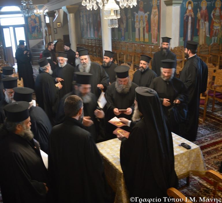 Τη Δευτέρα 14 Ιανουαρίου 2019, το πρωί, πραγματοποιήθηκε στον Ιερό Ναό Αγίας Τριάδος Γυθείου, η πρώτη για το 2019, γενική ιερατική σύναξη της Ιεράς Μητροπόλεως Μάνης. Αρχικά τελέστηκε Θεία Λειτουργία υπό του Σεβασμιωτάτου Μητροπολίτου Μάνης κ. Χρυσοστόμου Γ’, πλαισιωμένου από τον πρωτοσύγκελλο και το Γενικό Αρχιερατικό Επίτροπο της Ιεράς Μητροπόλεώς Αρχιμ. Συμεών Λαμπρινάκο και Αρχιμ. Νήφων Καρολεμέα αντίστοιχα και τον διάκονο π. Χριστόδουλο Κρουστάλλη. Στη συνέχεια ακολούθησε συζήτηση περί λατρευτικών και διοικητικών θεμάτων. Τέλος, ο Σεβ. Μητροπολίτης κ. Χρυσόστομος Γ’ ευλόγησε τη βασιλόπιτα της Ιεράς Μητροπόλεως, ενώ όλοι οι ιερείς, κατά την αποχώρησή τους από τον Ιερό Ναό, έλαβαν από τον Σεβασμιώτατο, ως ενθύμιο, ένα βιβλίο του.