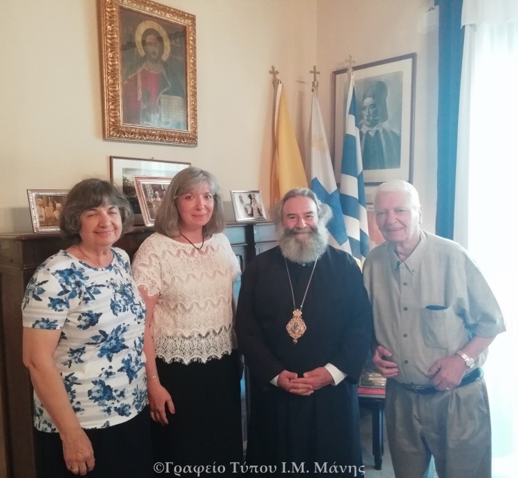 Στη συνέχεια ο Σεβ. δέχθηκε την οικογένεια Ευθυμίου και Μαρίας Κατέρη, ομογενείς στην Ν. Υόρκη Αμερικής και είχε μια ενδιαφέρουσα συζήτηση για τους Μανιάτες ομογενείς στις Η.Π.Α.