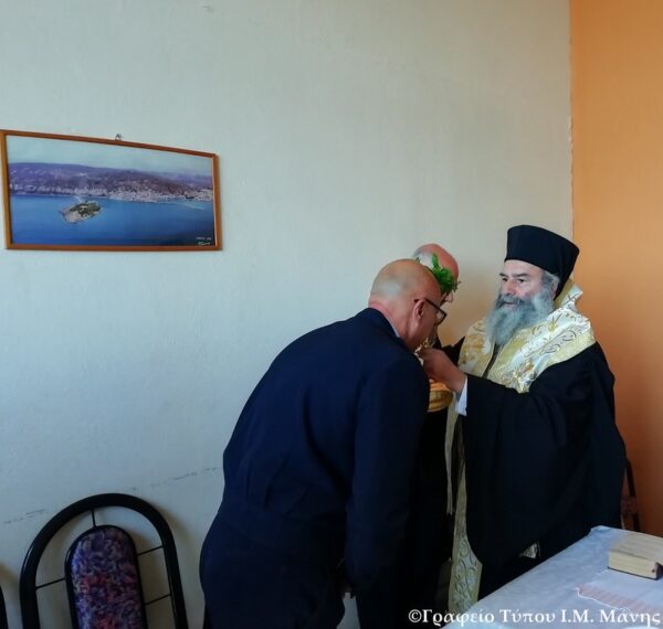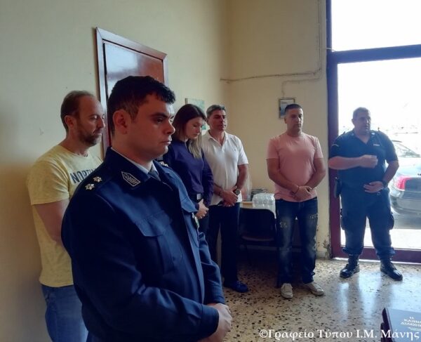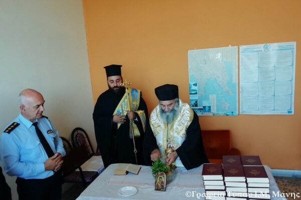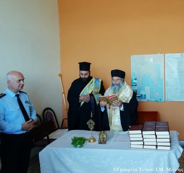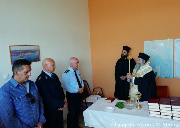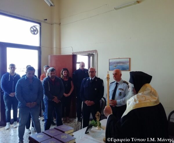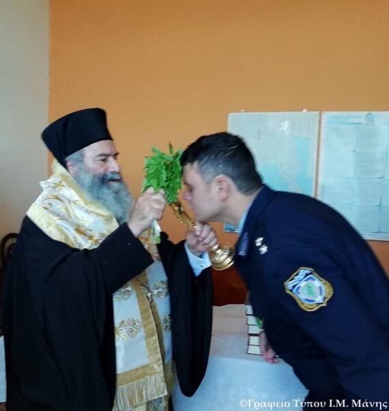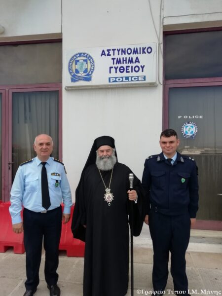 Ο Σεβ. Μητροπολίτης Μάνης, κ. Χρυσόστομος Γ’, μετέβη στο Αστυνομικό Τμήμα Γυθείου, όπου κατόπιν προσκλήσεως του νέου Διοικητού, Υπαστυνόμου Α’ κ. Βασιλάκου, τέλεσε την ακολουθία του Αγιασμού, παρουσία του Αστυνομικού Διευθυντού Λακωνίας κ. Τσιγαρίδη, των αξιωματικών και του πολιτικού προσωπικού της υπηρεσίας.