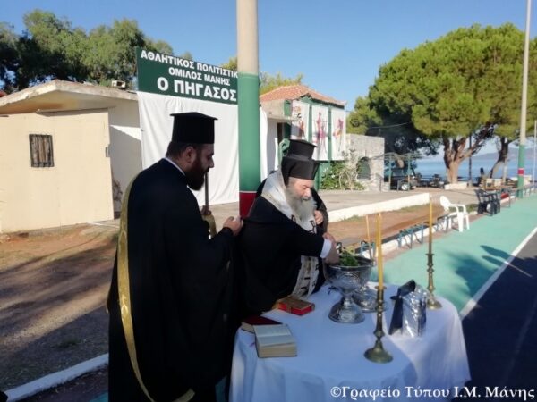 Με την ευκαιρία της ημέρας αθλητισμού ο Σεβ. Μητροπολίτης Μάνης κ. Χρυσόστομος Γ’ μετέβη χθες στους αθλητικούς χώρους του Ομίλου «Ο ΠΗΓΑΣΟΣ», στη Στούπα Δυτικής Μάνης και τέλεσε τον αγιασμό για την έναρξη όλων των αθλητικών και πολιτιστικών δραστηριοτήτων του Ομίλου.