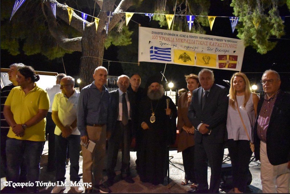 Εκδήλωση μνήμης αφιερωμένη στην Ορθόδοξη Χριστιανική Πίστη και Παράδοση με αφορμή τα 100 χρόνια από τη Μικρασιατική Καταστροφή πραγματοποιήθηκε στο Γύθειο την Κυριακή γι 18 Σεπτεμβρίου 2022 στον άυλειο χώρο του Ι. Ναού της Αγίας Τριάδος Γυθείου.