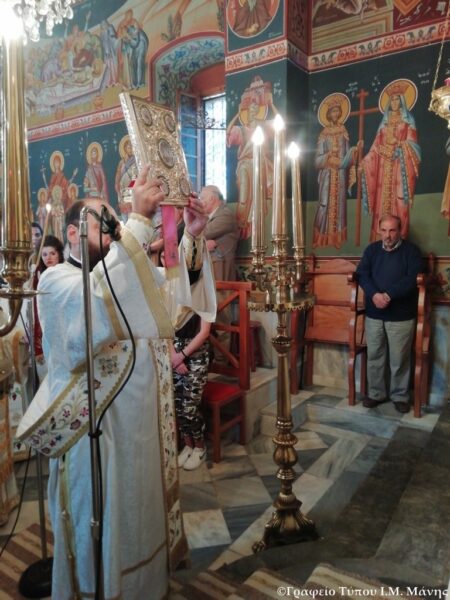 Έτσι και φέτος, κατά την Παρασκευή 18 Οκτωβρίου 2019, κυριώνυμο ημέρα της εορτής, τελέστηκε ο Όρθρος και στη συνέχεια η Αρχιερατική Θεία Λειτουργία προεξάρχοντος του Σεβ. Μητροπολίτου Μάνης κ. Χρυσοστόμου Γ’, πλαισιούμενου υπό του Γενικού Αρχιερατικού Επιτρόπου της Μητροπόλεώς, ιερέων της αρχιερατικής περιφέρειας Λεύκτρου και του διακόνου, παρουσία του Δημάρχου Δυτικής Μάνης κ. Γιαννημάρα, του Διοικητή του Α.Τ. Δυτικής Μάνης, Αστυνόμου Β’ κ. Κουρούπης, αντιδημάρχων και δημοτικών συμβούλων, μαθητών/τριών του Γυμνασίου και Λυκείου Καρδαμύλης με τους εκπαιδευτικούς τους και πλήθος ευσεβών χριστιανών.