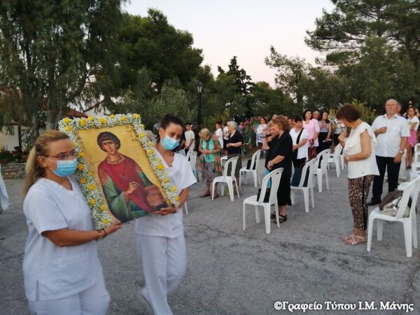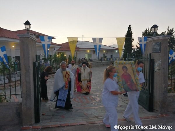 Τον Πανηγυρικό Εσπερινό για την εορτή του Αγ. Μεγαλομάρτυρος Παντελεήμονος του Ιαματικού, τέλεσε ο Σεβ. Μητροπολίτης Μάνης κ. Χρυσόστομος Γ’, πλαισιούμενος από τον πρωτοπρ. π. Ηλία Μανιατάκο και τον διάκονο π. Χριστόδουλο Κρουστάλη στο Ίδρυμα Χρονίως Πασχόντων της Ιεράς Μητροπόλεώς «Ο ΑΓΙΟΣ ΠΑΝΤΕΛΕΗΜΩΝ», την Κυριακή 26 Ιουλίου 2020, παραμονή της εορτής, με την παρουσία πλήθους πιστών, αλλά ένεκεν των υγειονομικών μέτρων έξωθεν του Ι.Ναού και φυσικά του Ιδρύματος.