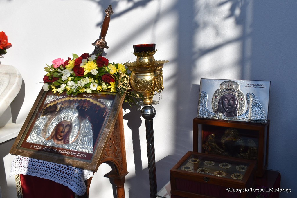 Πλαισιούμενος από τον κτίτορα του Παρεκκλησίου π. Σταύρο Βλαστέλλη και τον π. Παναγιώτη Αρφάνη, ο Σεβασμιώτατος στο κήρυγμα του αναφέρθηκε στο ιστορικό της ανάγλυφης εικόνας του Αρχαγγέλου Μιχαήλ στον ήδη προσκυνηματικό τόπο Μανταμάδος Λέσβου.