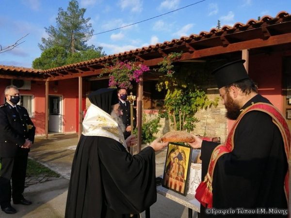 Με την ευκαιρία της σημερινής εορτής των Τριών Παίδων, Ανανίου, Αζαρίου και Μισαήλ, προστατών του Πυροσβεστικού Σώματος, ο Σεβασμιώτατος Μητροπολίτης Μάνης κ. Χρυσόστομος Γ’, μετέβη στην έδρα της Πυροσβεστικής Υπηρεσίας Γυθείου και τέλεσε την Ιερά Ακολουθία της Αρτοκλασίας, τηρουμένων των υγειονομικών μέτρων, παρουσία του Διοικητού της Υπηρεσίας, Αντιπυράρχου κ. Κων. Γραφάκου, αξιωματικών και λοιπού προσωπικού.