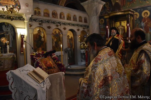 Ο Σεβ. Μητροπολίτης Μάνης κ. Χρυσόστομος μετέβη στον Ι.Ν. Μεταμορφώσεως στις Αιγιές, όπου εψάλη ο Ακάθιστος Ύμνος. Στο κήρυγμά του, μίλησε για το τρίπτυχο: α) την Παναγία Βλαχερνών, ιερό ναό, όπου για πρώτη φορά λέχθηκε ο ύμνος αυτός για την Παναγία και μάλιστα «ορθοστάδην», δηλ. όρθιοι για να ευχαριστήσουν την Υπέρμαχο Στρατηγό. β) Για το κύρος και σημασία του Οικουμενικού Πατριαρχείου μας και την συνεχή προσευχή μας για τον ιερό αυτό θεσμό και τον Οικουμενικό Πατριάρχη μας κ. Βαρθολομαίο και γ) για την μεγάλη αξία του Βυζαντινού πολιτισμού, όχι μόνον ως ιστορικού γεγονότος αλλά και ως μια έμπνευση για το σήμερα.