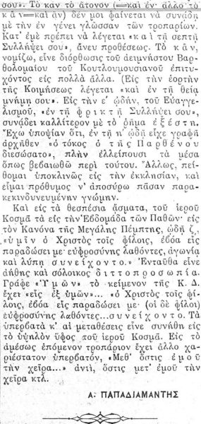 Επ’ ευκαιρία της Μεγάλης Τεσσαρακοστής, η Ιερά Μητρόπολη Μάνης αναδημοσιεύει “Ολίγαι σημειώσεις εις το Τριώδιον” του μακαριστού Αλέξανδρου Παπαδιαμάντη. Το κείμενο είναι δημοσιευμένο στη δεκαπενθήμερο μουσική εφημερίδα της εποχής, “Φόρμιγξ”.