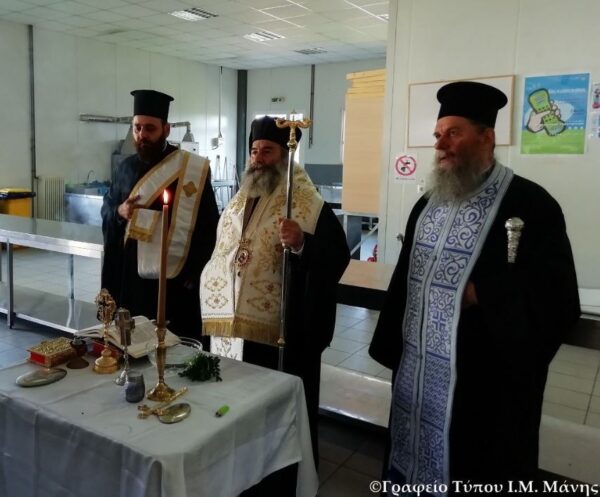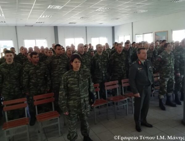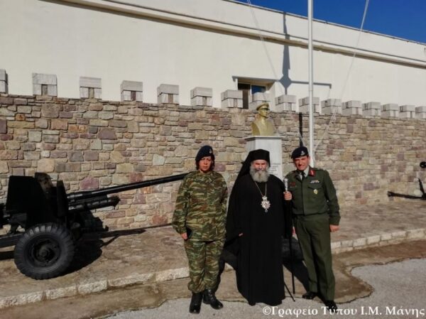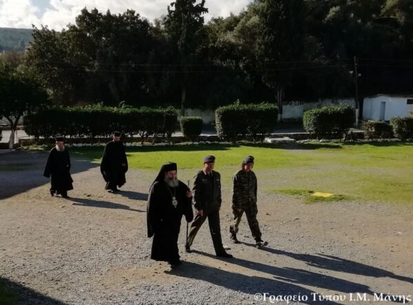 Ο Σεβασμιώτατος Μητροπολίτης Μάνης κ. Χρυσόστομος Γ’, κατόπιν προσκλήσεως μετέβη σήμερα, στο στρατόπεδο «3ο Τάγμα ΚΕΕΜ – Σχολή Μαγείρων – Τχη (ΠΖ) Παναγιώτη Μαντούβαλου» στο Γύθειο, όπου έχει αφιχθεί η νέα σειρά στρατευσίμων οπλιτών και αφού έτυχε θερμής υποδοχής από τον Διοικητή του ΚΕΕΜ, Ταξίαρχο κ. Χρυσακόπουλο και την Διοικήτρια του Τάγματος, Αντισυνταγματάρχη κα Φραγκιάδου, τέλεσε τον καθιερωμένο αγιασμό, πλαισιούμενος από τον εντεταλμένο για το Στρατό, υπεύθυνο ιερέα της Μητροπόλεώς, π. Ηλία Μανιατάκο, προς ευλογίαν αξιωματικών, υπαξιωματικών και οπλιτών.