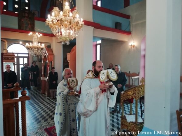Στο μικρό χωριό Πλάτανος (παλαιά ονομασία Λίμπερδο), κοντά στο Γύθειο, μια περιοχή γεμάτη ελαόδενδρα, μετέβη σήμερα 17 Νοεμβρίου 2019, ο Σεβ. Μητροπολίτης Μάνης, κ. Χρυσόστομος Γ’, και τέλεσε την Θ. Λειτουργία, στον Ι.Ν. Αγίου Γεωργίου, πλαισιούμενος από τον εφημέριο π. Παναγιώτη Αρφάνη και τον διάκονο της Μητροπόλεως π. Χριστόδουλο Κρουστάλλη.