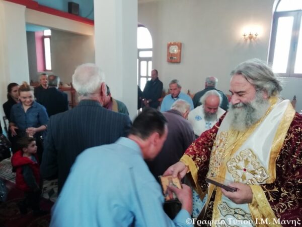 Μετά το πέρας της Θ. Λειτουργίας, ο Σεβ. πρόσφερε στους κατοίκους του χωρίου εικόνες κατά το πρόγραμμα.