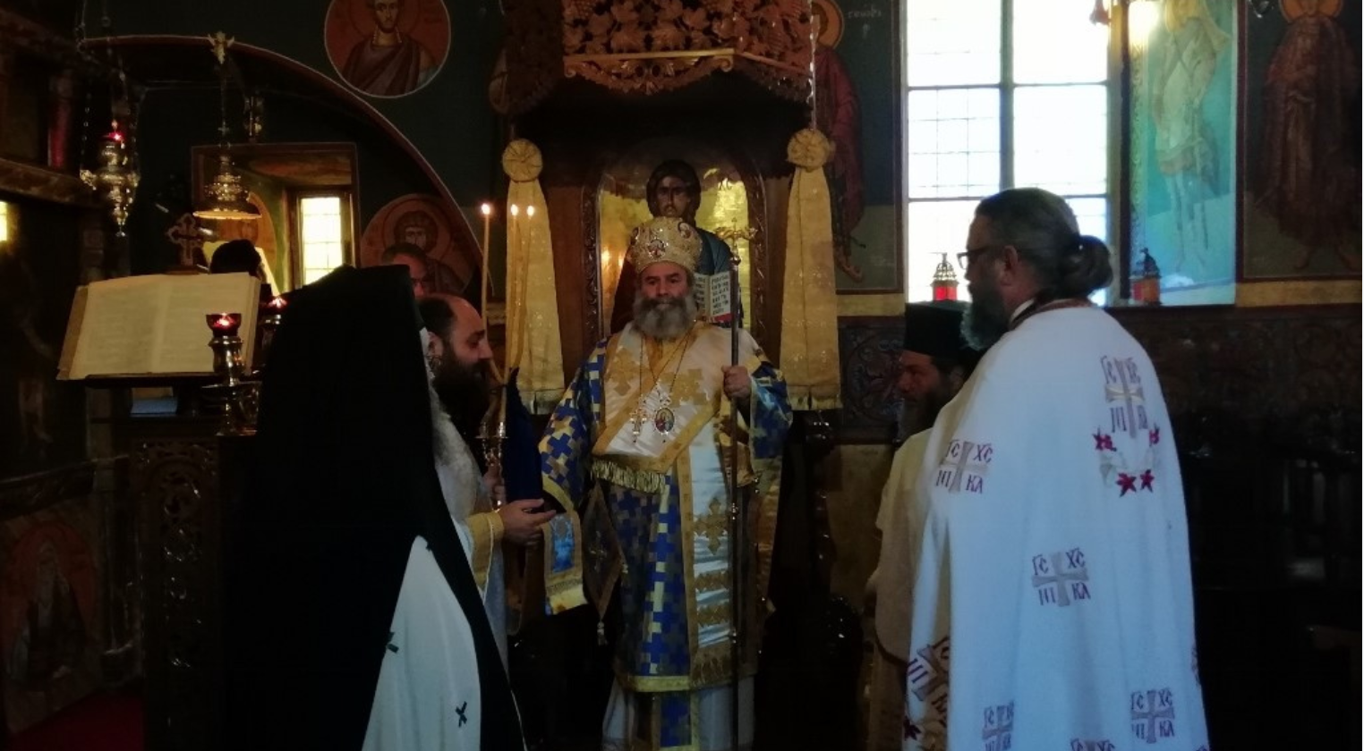 Της Πανηγυρικής Αρχιερατικής Θείας Λειτουργίας, η οποία ετελέσθη στον ιστορικό Ιερό Ναό Παμμεγίστων Ταξιαρχών Αρεόπολης προεξήρχε ο Σεβ. Μητροπολίτης Μάνης κ. Χρυσόστομος Γ’, πλαισιωμένος από τον αρχιμ. π. Συμεών Λαμπρινάκο, πρωτοσύγκελλο της Ιεράς Μητροπόλεως και από άλλους κληρικούς.