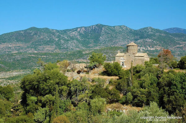 Μετά το πέρας της Θ. Λειτουργίας, ο Σεβ. πραγματοποίησε περιοδεία στην ευρύτερη ημιορεινή περιοχή, όπου υπάρχουν πολλοί βυζαντινοί και μεταβυζαντινοί ναοί και ιδιαίτερα θαύμασε κατά την επίσκεψή του, τους δύο σπουδαίους Ι.Ναούς: Πρώτον, τον Ι.Ναό Κοιμήσεως της Θεοτόκου – Αγίας Σοφίας Γούρνιτσας, ο οποίος έχει μια καταπληκτική τοιχοποιία από πελεκητά αγκωνάρια και είναι γεμάτος από σπουδαιότατες και σπάνιες ζωντανές σε χρώματα αγιογραφίες. Ακόμη και αυτή η Αγία Τράπεζα έχει ωραίες παραστάσεις. Χρονολογούνται τον 17ο αιώνα. Δεύτερον, ο Ι.Ναός της Κοιμήσεως της Θεοτόκου της παλαιάς Ι.Μονής Καράβελη, όνομα που έλαβε η Μονή επειδή το λάδι που μαζευόταν από την περιουσία της μπορούσε να γεμίσει ένα ολόκληρο καράβι. Μαζί με τον Ναό πρόκεται συγκεκριμένα για ένα κτηριακό σύνολο με αμυντικά χαρακτηριστικά λόγω της θέσεως του (βρίσκεται εκτός του οικισμού Πετροβουνίου της Καρδαμύλης) του 17ου αι., όπου αργότερα λειτούργησε και Κρυφό Σχολειό και μετά το 1821 ήταν εν λειτουργία ως γυναικεία Ι.Μονή. Ο Ναός της Μονής είναι ένα αξιόλογο κτίσμα – βασιλική με τρούλο, ο οποίος έχει σπάνια ωραία διακόσμηση. Η Ι.Μονή φέρει επίσης και την ονομασία Ι.Μονή Στριτιτσίου, αλλά δυστυχώς έχει ερημωθεί.