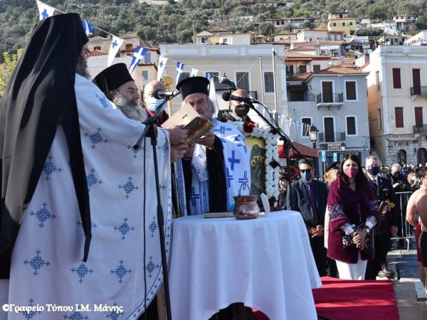 Σύμφωνα με το καθιερωμένο Τυπικό της Εκκλησίας και με την τήρηση των υγειονομικών μέτρων ο Σεβασμιώτατος αγίασε την θάλασσα με τον Τίμιο Σταυρό, και ευχήθηκε: «Είθε να λάβουμε, όπως λέγει το πρώτο τροπάριο του Αγιασμού, πνεύμα σοφίας, πνεύμα συνέσεως, πνεύμα φόβου Θεού. Χρόνια πολλά σ’ όλους».