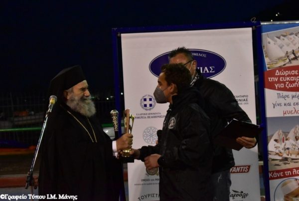 Ο Μητροπολίτης Μάνης κ. Χρυσόστομος Γ’ μετέβη στις εγκαταστάσεις του Ναυτικού Ομίλου Λακωνίας, όπου έγινε η τελετή απονομής επάθλων στους νικητές του Περιφερειακού Πρωταθλήματος Νοτίου Ελλάδος 2022 στις κατηγορίες Optimist και Ilca 4, την Κυριακή 6 Φεβρουαρίου 2022. Ο Σεβασμιώτατος, μεταξύ άλλων, είπε: “Επαινώ τους άξιους ιστιοπλόους για το θάρρος, την τόλμη και την αντοχή τους στο αγώνισμα αυτό”.