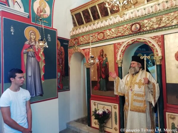 Ο Σεβ. Μητροπολίτης Μάνης κ. Χρυσόστομος Γ’ μετέβη σήμερα, Τρίτη 7 Ιουλίου 2020, στο Σιδηρόκαστρο της νοτίου Ελλάδος στην ορεινή κοινότητα με το βυζαντινό κάστρο, στο χωρίον Σιδηρόκαστρο Ανατολικής Μάνης, όπου και λειτούργησε στον εορτάζοντα Ι.Ναό της Αγίας Κυριακής πλαισιούμενος από τον πρωτοπρ. π. Στέφανο Ταβουλάρη και τον διάκονο π. Χριστόδουλο Κρουστάλη.
