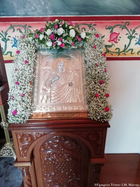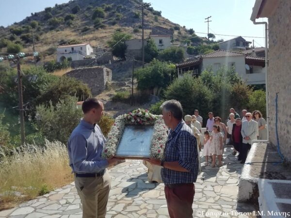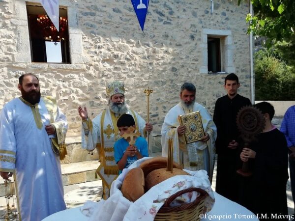 Προ της απολύσεως της Θ. Λειτουργίας πραγματοποιήθηκε η λιτάνευση της Ιεράς Εικόνος πέριξ του Ιερού Ναού και η ευλογία των άρτων.