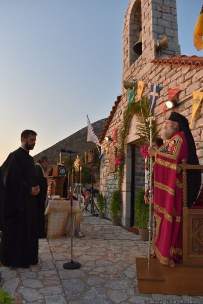 Στον Ιερό Ναό Αγίου Κοσμά του Αιτωλού, στον ορεινό όγκο Σαγγιάς της περιοχής της Τριανταφυλλιάς, Ανατολικής Μάνης, χοροστάτησε στον Πανηγυρικό Εσπερινό ο Μητροπολίτης Μάνης κ. Χρυσόστομος Γ’.