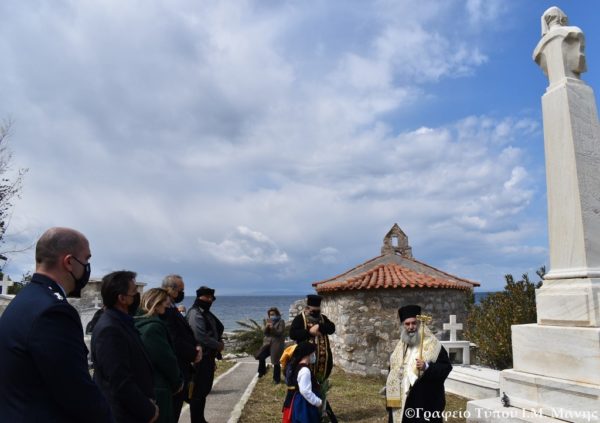 Συμβολικά έγινε κατάθεση στεφάνων από μικρούς μαθητές και εκπροσώπους των τοπικών αρχών.