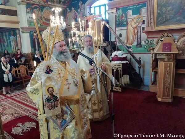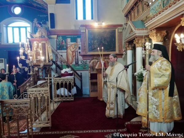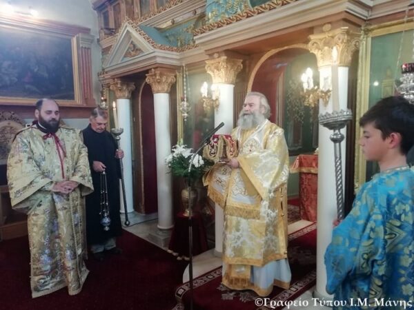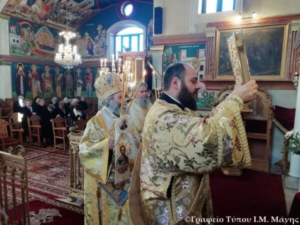 Ο Σεβ. Μητροπολίτης Μάνης κ. Χρυσόστομος Γ’, σήμερα, Κυριακή 1 Μαρτίου 2020, (Κυριακή της Τυρινής), ιερούργησε στον Ι.Ν. Αγ. Τριάδος Γυθείου.