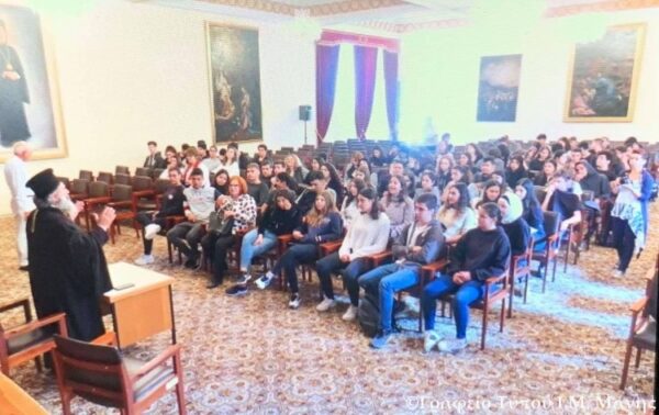 Ο Σεβασμιώτατος αφού έγινε δεκτός με πολλή χαρά από την Διευθύντρια του Γυμνασίου κ. Σοφία Ιωάννου, φιλόλογον και τους καθηγητές, μίλησε στους μαθητές/τριες με θέμα: «Τί σημαίνει οτι είμαστε ορθόδοξοι χριστιανοί».