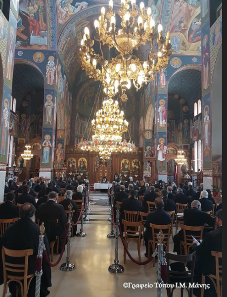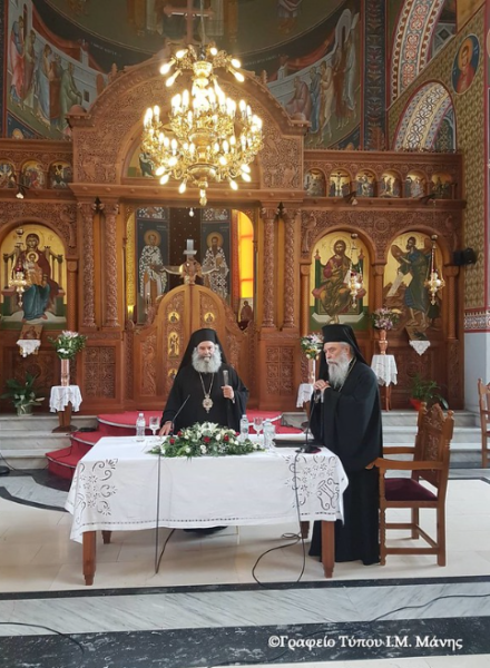 Ο σεβασμιώτατος Μητροπολίτης Μάνης κ. Χρυσόστομος Γ‘, κατόπιν τιμητικής προσκλήσεως του ομόρου σεβασμιωτάτου Μητροπολίτου Μονεμβασίας και Σπάρτης κ. Ευσταθίου, μετέβη στον ευρύχωρο Ι. Ναό Αγίου Νικολάου Σπάρτης και μετά την τέλεση της Θείας Λειτουργίας και την προσφώνηση του οικείου Ιεράρχου μίλησε στους ιερείς της Ιεράς Μητροπόλεως Μονεμβασίας και Σπάρτης με θέμα: «Ο ιερεύς ως λειτουργός του θείου Θυσιαστηρίου».