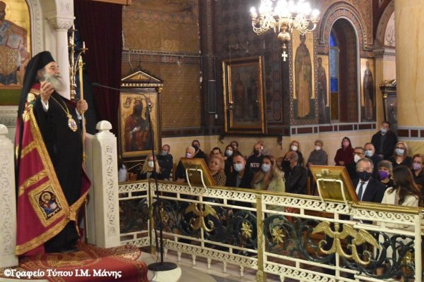 Προσκληθείς από τους Συλλόγους Μανιατών Πειραιώς και περιχώρων, και με την ευλογία και κανονική άδεια του επιχώριου Μητροπολίτη Πειραιώς κ. Σεραφείμ, ο Μητροπολίτης Μάνης κ. Χρυσόστομος Γ’ μετέβη χθες Παρασκευή 1 Απριλίου στον Ι. Ναό Αγ. Σοφίας Πειραιώς (Μανιάτικα), όπως κάθε χρόνο και τέλεσε την Δ’ στάση των Χαιρετισμών της Παναγίας.