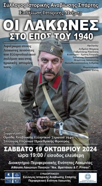 Ο Σεβ. Μητροπολίτης Μάνης κ. Χρυσόστομος Γ’ παρέστη στην αξιόλογη και επίκαιρη εκδήλωση με τον τίτλο «Οι Λάκωνες στο Έπος του 1940» που διεξήχθη στο Διοικητήριο της Περιφερειακής Ενότητας Λακωνίας στις 19 Οκτωβρίου 2024 και διοργάνωσε ο Σύλλογος Ιστορικής Αναβίωσης Σπάρτης.