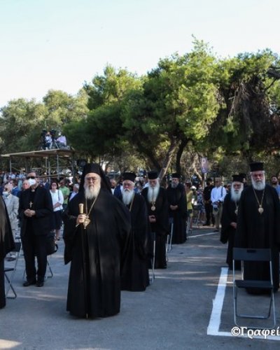 Στην Ακολουθία του Εσπερινού χοροστάτησε ο Μακαριώτατος Αρχιεπίσκοπος Αθηνών και πάσης Ελλάδος κ. Ιερώνυμος, ενώ παρέστησαν Αρχιερείς, εκπρόσωποι της Πολιτείας, των σωμάτων ασφαλείας και των ενόπλων δυνάμεων, κληρικοί και λαϊκοί.