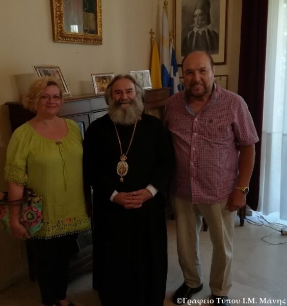 Ο Σεβ. Μητροπολίτης Μάνης κ. Χρυσόστομος Γ’ δέχθηκε εθιμοτυπικώς στο Γραφείο του τον διεθνούς φήμης μονωδό-βαρύτονο κ. Λούη Μανίκα, τον συνεργάτη του διάσημου βαρύτονου Γκόμπι, καταγομένου από τον Αγ. Νικόλαο Μάνης (περιοχή Σμύνους), μετά της συζύγου του κυρίας Δέσποινας Μακρή – Μανίκα εκπαιδευτικού και είχαν μια ενδιαφέρουσα συζήτηση για θέματα πνευματικά και θεολογικά ως και για ζητήματα μουσικής παιδείας. Ο εξαίρετος μουσικός διδάσκει σήμερα τεχνική και ερμηνεία τραγουδιού στη Φινλανδία.