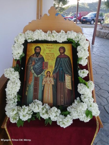 Η μνήμη των νεοφανών ενδόξων αγίων μαρτύρων Ραφαήλ, Νικολάου και Ειρήνης, των θαυματουργών, εορτάστηκε σήμερα, Τρίτη της Διακαινησίμου, 26 Απριλίου 2022, στο ιδιωτικό παρεκκλήσιο της οικογένειας του κ. Παναγιώτη Τζινάκου, που βρίσκεται ψηλά σε λόφο, λίγο έξω από την πόλη του Γυθείου.