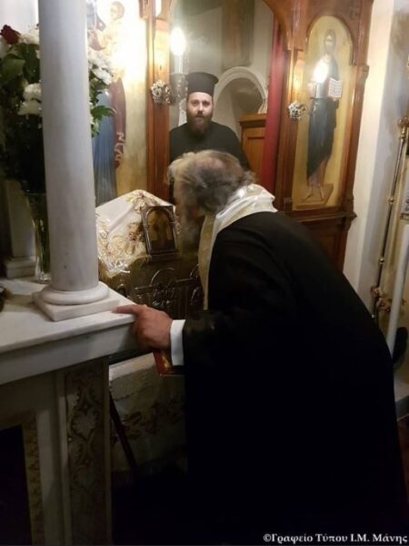Υπό την καθοδήγηση του Μητροπολίτου Μάνης κ. Χρυσοστόμου Γ’ και κατόπιν κανονικής αδείας του οικείου Αρχιερέως Σεβ. Μητροπολίτου Ύδρας, Σπετσών και Αιγίνης κ. Εφραίμ τριάντα κληρικοί της Ι. Μητροπόλεώς Μάνης μετέβησαν την Πέμπτη 20 Ιουνίου 2019 εις νήσον Αίγινα, εις την Ι.Μονήν Αγίας Τριάδος – Αγ. Νεκταρίου και αφού έψαλαν όλοι μαζί τον Παρακλητικό Κανόνα προς τον θαυματουργό άγιο είχαν την ευλογία να προσκυνήσουν την κάρα του Αγίου και τα άλλα ιερά λείψανα, τον τάφου του και να αισθανθούν την όλη ιερότητα του Αγίου των ημερών μας.