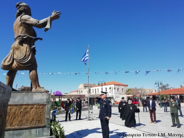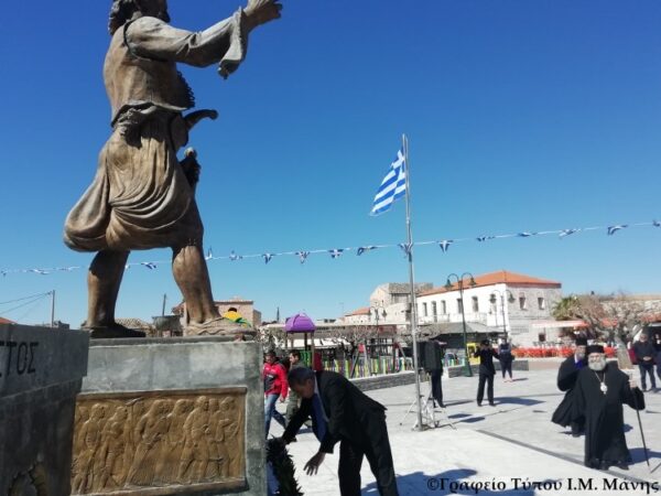 Στην Αρεόπολη, όπου ξεκίνησε ο ένοπλος αγώνας κατά της Οθωμανικής αυτοκρατορίας το 1821, μετέβη ο Σεβασμιώτατος Μητροπολίτης Μάνης κ. Χρυσόστομος Γ΄και τέλεσε τρισάγιο στην Κεντρική πλατεία “Αθανάτων”, ενώπιον του αγάλματος του Μανιάτη Οπλαρχηγού Πετρόμπεη Μαυρομιχάλη, την Τρίτη 17 Μαρτίου 2020.