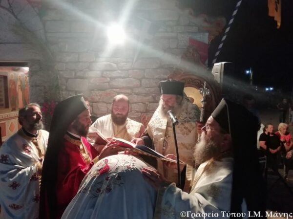 Ο Σεβ. Μητροπολίτης κ. Χρυσόστομος Γ’ μετέβη το εσπέρας της εορτής και πλαισιούμενος από πλειάδα ιερέων χοροστάτησε στον Πανηγυρικό Εσπερινό, παρουσία του Βουλευτή Λακωνίας κ. Δαβάκη και πλήθους ευλαβών προσκυνητών.