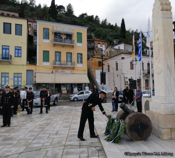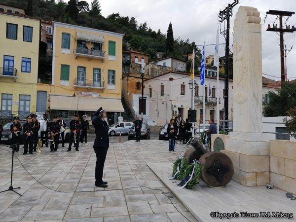 Στη συνέχεια στο Ηρώον της πόλης εψάλη τρισάγιο και πραγματοποιήθηκε η κατάθεση τιμητικών στεφάνων.