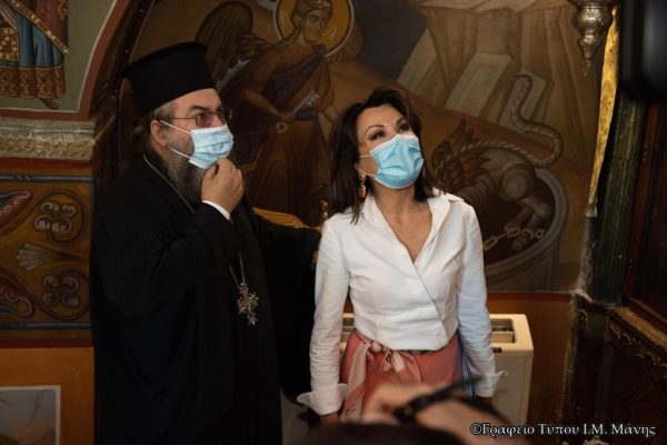 Χθες, Πέμπτη 15 Οκτωβρίου 2020 στην Αρεόπολη και στο παλαιό Δημαρχείο πραγματοποιήθηκε συνάντηση του Σεβασμιωτάτου Μητροπολίτου Μάνης κ. Χρυσοστόμου Γ’ μετά της κας Γιάννας Αγγελοπούλου με την ιδιότητά της, εκείνης, της Προέδρου της Επιτροπής «ΕΛΛΑΔΑ 2021» για τους εορτασμούς της επετείου των 200 χρόνων της Ελληνικής Επαναστάσεως.