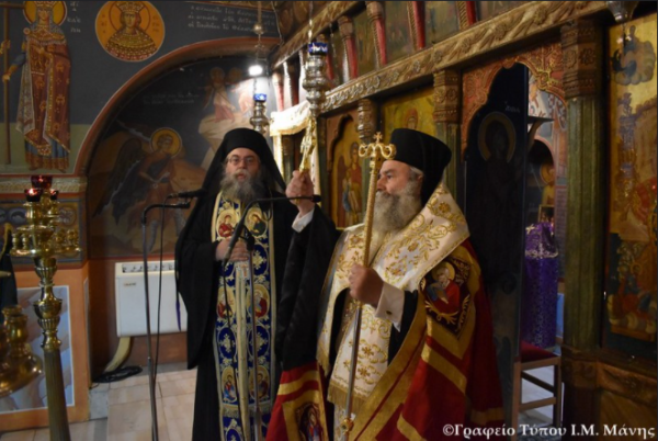 Ο Σεβασμιώτατος, προσέφερε ως δώρο για την επίσκεψή της στη Μάνη, στην κα Πρόεδρο, αντίγραφο της εικόνας των Παμμεγίστων Ταξιαρχών και μια Καινή Διαθήκη.