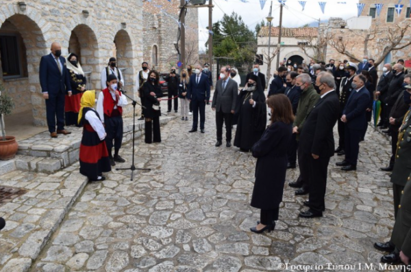 Με την παρουσία της Προέδρου της Ελληνικής Δημοκρατίας Κατερίνας Σακελλαροπούλου τιμήθηκε στην Αρεόπολη η 200η επέτειος από την έναρξη της Ελληνικής Επανάστασης του 1821.