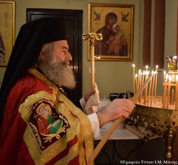 Στον πανηγυρικό αρχιερατικό Εσπερινό, ως και στην θ. Λειτουργία προεξήρχε ο Σεβ. Μητροπολίτης Μάνης κ. Χρυσόστομος Γ’ συμπαραστατούμενος από τόνΑρχιμ. π. Συμεών Λαμπρινάκο, Πρωτοσύγκελλο της Ιεράς Μητροπόλεως, τον πρωτοπρ. π. Ηλία Μανιατάκο και τον αρχιδιάκονο π. Χριστόδουλο Κρουστάλη, ενώ στο αναλόγιο ήταν οι: Ανάργυρος Δερδελάκος και Πέτρος Καλαποθαράκος.