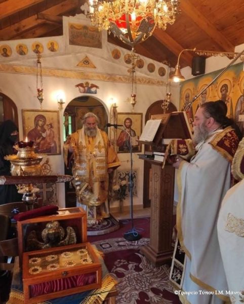 Στο Παρεκκλήσιο επ’ ονόματι των αγίων Ταξιαρχών, που ευρίσκεται στο ωραίο Μαυροβούνιο, περιοχής Γυθείου, το οποίο έχει επιμεληθεί ο πρωτ. π. Σταύρος Βλαστέλης, μετέβη σήμερα 29 Σεπτεμβρίου 2021, ο Σεβασμιώτατος Μητροπολίτης Μάνης κ. Χρυσόστομος Γ’ και τέλεσε την Θεία Λειτουργία συμπαραστατούμενος από τους ιερείς π. Σταύρο Βλαστέλη και π. Χριστόδουλο Κρουστάλη. Στο αναλόγιο έψαλε ο κ. Κυριάκος Δερδελάκος.