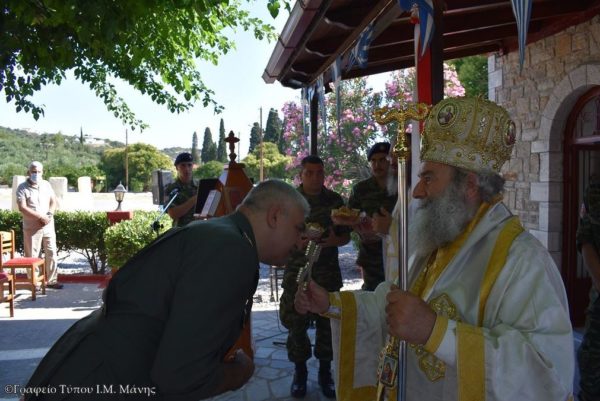Στον Ιερό Ναό Αγίας Μαρίνης του Στρατοπέδου «ΤΑΓΜΑΤΑΡΧΗ Π. ΜΑΝΤΟΥΒΑΛΟΥ» του 2ου Τάγματος ΚΕΕΜ που εδρεύει στο Γύθειο, μετέβη σήμεραο Σεβ. Μητροπολίτης Μάνης κ. Χρυσόστομος Γ’ και τέλεσε την Θεία Λειτουργία για την εορτή της αγίας ενδόξου Μεγαλομάρτυρος Μαρίνης.