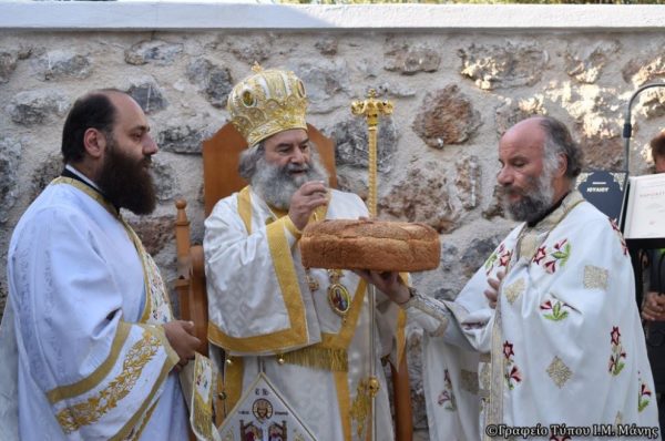 Τέλος ο Σεβασμιώτατος τέλεσε Τρισάγιον υπέρ αναπαύσεως των ψυχών των κεκοιμημένων: π. Νίκωνος Χαρέα Ιεροκήρυκος, καταγομένου εκ Δυτ. Μάνης (Γαιτσές) και των κτιτόρων Βασιλικής και Ελένης (Λεκέα).
