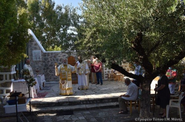 Ο Σεβ. Μητροπολίτης Μάνης κ. Χρυσόστομος Γ’ τέλεσε την Θεία Λειτουργία συμπαραστατούμενος από τον π. Ιωάννη Κουρεντζή, Αρχιερατικό Επίτροπο Λεύκτρου και τον αρχιδιάκονο π. Χριστόδουλο Κρουστάλη.