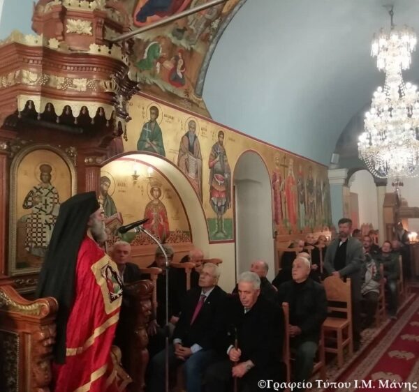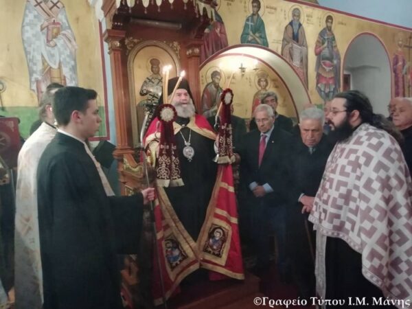 Ο Σεβ. Μητροπολίτης Μάνης κ. Χρυσόστομος Γ’ το εσπέρας της Τετάρτης 29 Ιανουαρίου 2020, παραμονής της εορτής των εν Αγίοις Πατέρων ημών και Οικουμενικών Διδασκάλων, Βασιλείου του Μεγάλου, Γρηγορίου του Θεολόγου και Ιωάννου του Χρυσοστόμου, μετέβη στην ενορία Μαυροβουνίου Γυθείου, όπου χοροστάτησε στον Πανηγυρικό Εσπερινό στον εορτάζοντα ενοριακό Ιερό Ναό, πλαισιούμενος από τους αρχιμ. π. Νήφωνα Καρολεμέα, Γενικό Αρχιερατικό Επίτροπο της Ιεράς Μητροπόλεώς μας, αρχιμ. π. Ελευθέριο Μπαλάκο, πρωτοπρ. π. Μιχαήλ Μπούρτζινο, πρωτοπρ. π. Σταύρο Βλαστέλλη, εφημέριο του Ιερού Ναού και υπεύθυνο του Γενικού Φιλοπτώχου Ταμείου της Ιεράς Μητροπόλεώς μας, τον πρεσβ. π. Ευάγγελο Γκούμα και τον διάκονο π. Χριστόδουλο Κρουστάλλη.