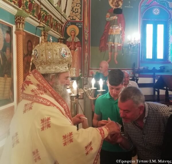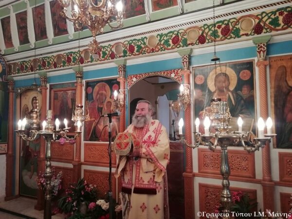 08/07/2020 08/07/2020 Ο Σεβ. Μητροπολίτης Μάνης κ. Χρυσόστομος Γ’ εόρτασε τον άγιο Μεγαλομάρτυρα Προκόπιο στο πολύ ορεινό χωριό Άρνα Λακωνίας που βρίσκεται στην ανατολική πλευρά του Ταϋγέτου, 35χιλιομ. από το Γύθειο, σε υψόμετρο 850μ.. Στον εκεί εορτάζοντα Ιερό Ναό του Αγίου Προκοπίου, χοροστάτησε στην Ακολουθία του Όρθρου και στη συνέχεια τέλεσε τη Θ. Λειτουργία, πλαισιούμενος από τον...