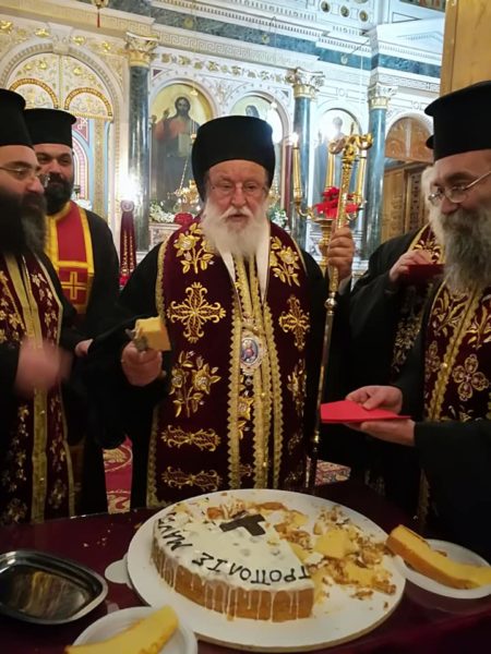 Στον Μητροπολιτικό Ναό του Αγίου Βασιλείου Τριπόλεως ο Σεβασμιώτατος Μητροπολίτης Μαντινείας κ. Αλέξανδρος υποδέχθηκε τόν καινούργιο Χρόνο 2019 καί εὐθύς ἀμέσως κατά το νέο ἔτος, 1η Ἰανουαρίου 2019 εὐλόγησε τήν Βασιλόπιττα τῆς Ἱερᾶς Μητροπόλεως Μαντινείας και Κυνουρίας εὐχόμενος ὁ νέος Χρόνος νά εἶναι εὐλογημένος καί εἰρηνικός.
