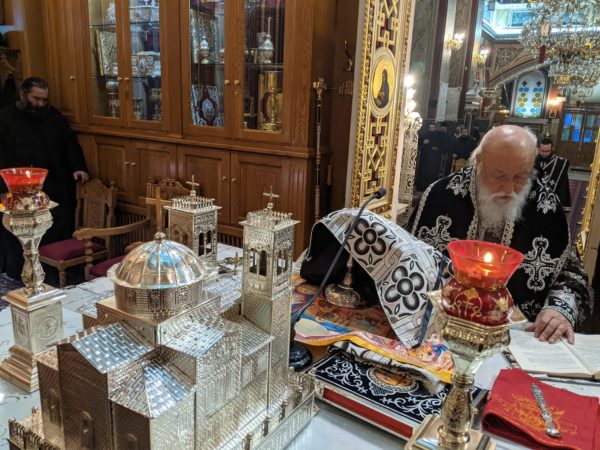 Ο Μητροπολίτης Μαντινείας και Κυνουρίας κ. Αλέξανδρος τέλεσε την πρώτη εσπερινή Προηγιασμένη Θεία Λειτουργία στον Μητροπολιτικό Ιερό Ναό Αγίου Βασιλείου Τριπόλεως, παρουσία Ιερέων της πόλεως, ευλαβών ενοριτών και πιστών, οι οποίοι συμμετείχαν στην Ακολουθία και το Μυστήριο της Θείας Ευχαριστίας, την Τετάρτη 9 Μαρτίου 2022.
